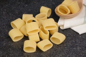 Does this pasta’s name sound familiar? This tube-shaped pasta resembles calamari rings, which is why it tends to be used in seafood dishes. Fresh seafood dishes are a staple in Italy, particularly the southern region. Calamarata’s smooth texture with no ridges allows thinner sauces to coat the pasta allowing the sauce to shine. It also holds up well with chopped vegetables, like tomatoes or zucchini. A smaller version of this noodle is called calamaretti.
