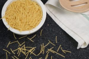 Fideo means pasta in Spanish. This shape is used in many Spanish and Mexican recipes, such as the popular “Pasta de Fideos.” Fideo pasta also pairs well with vegetables and lean meats.